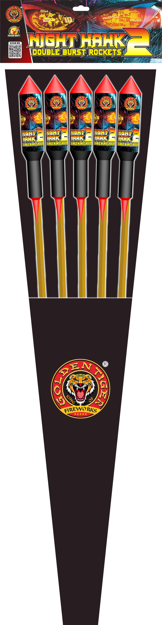 Our brand new version of the Double Burst Hawk style rockets, Night Hawk 2 Rockets by Golden Tiger Fireworks!